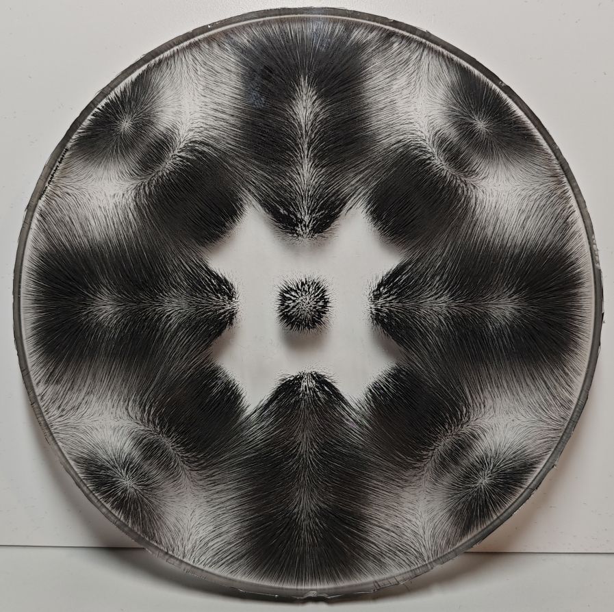 Fast forward 6 years, I started to arrange magnetic fields into patterns resembling mandalas and pour resin with magnetic particles into the form over it.
